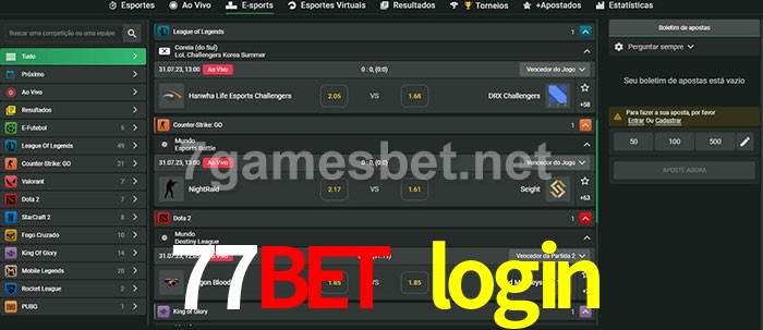 A aposta 77bet login oferece aos jogadores a experiência mais conveniente de apostas em eSports!
